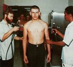 I went through San Diego over a year before the clip was made and it's pretty close, I think our hair cuts on top of our head were the same length as the sides, maybe 3/8 in. long. I don't believe anyone took exams at 0400, they would've had to eat breakfast at 0300, we were rousted out in the middle of the night a couple of times and punished for an offense or a cooked up one which was very possible.